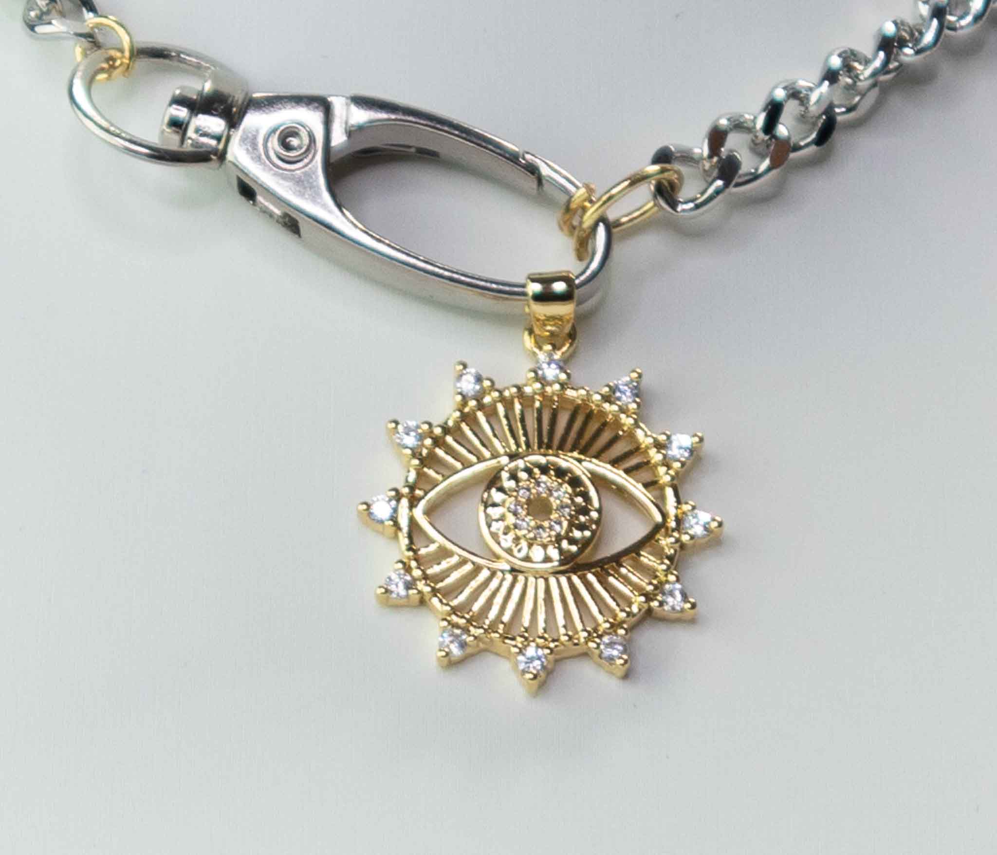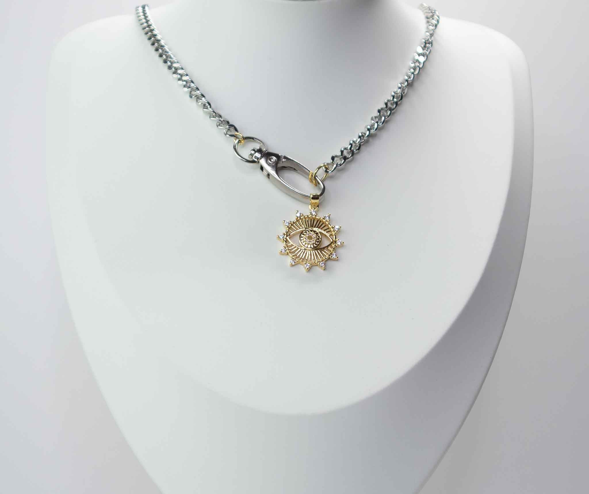 Collar Plateado con dije de Sol Dorado en material Acero.