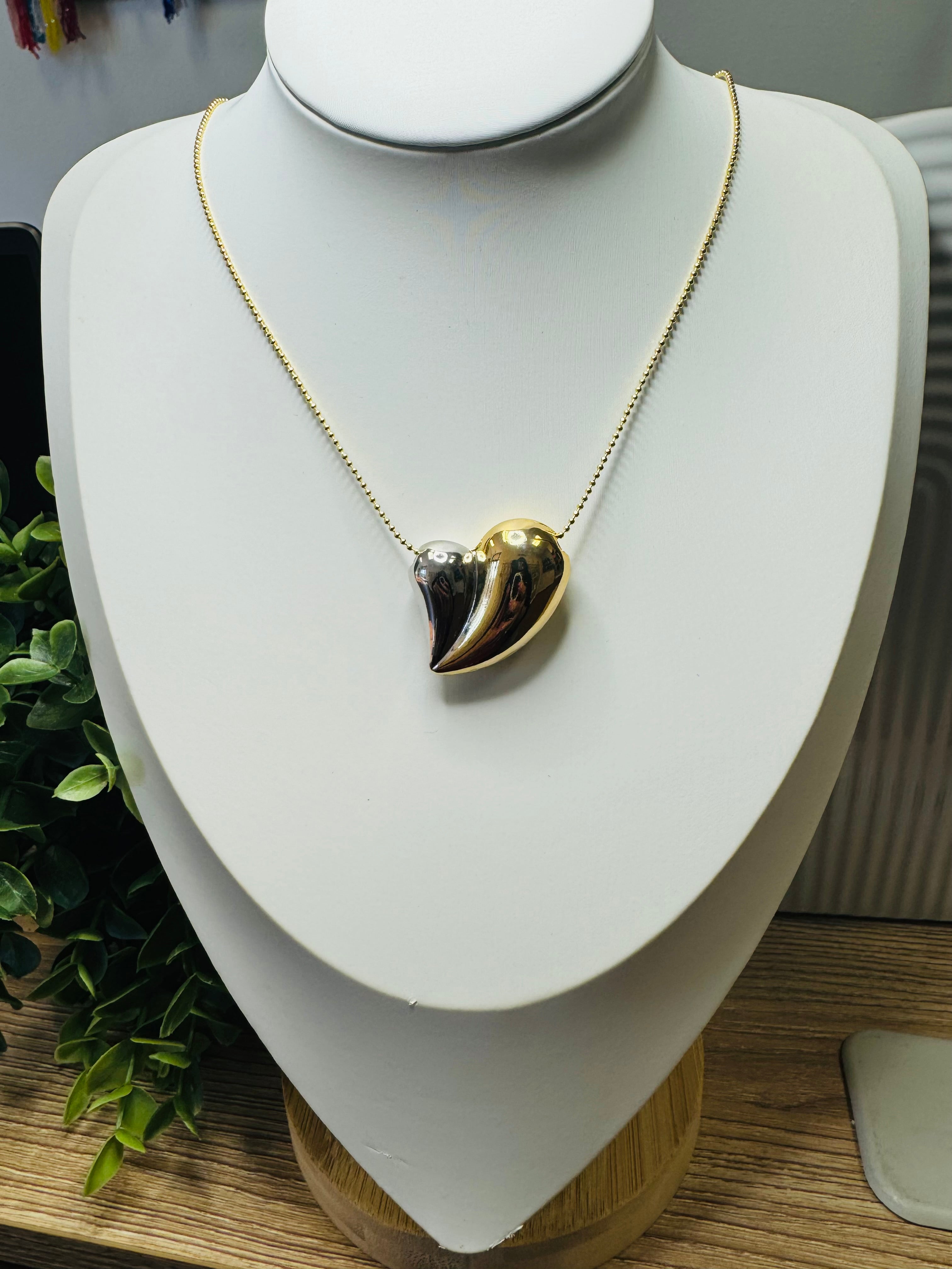 Collar dorado con dije de corazon en Dorado y plateado en material rodio.
