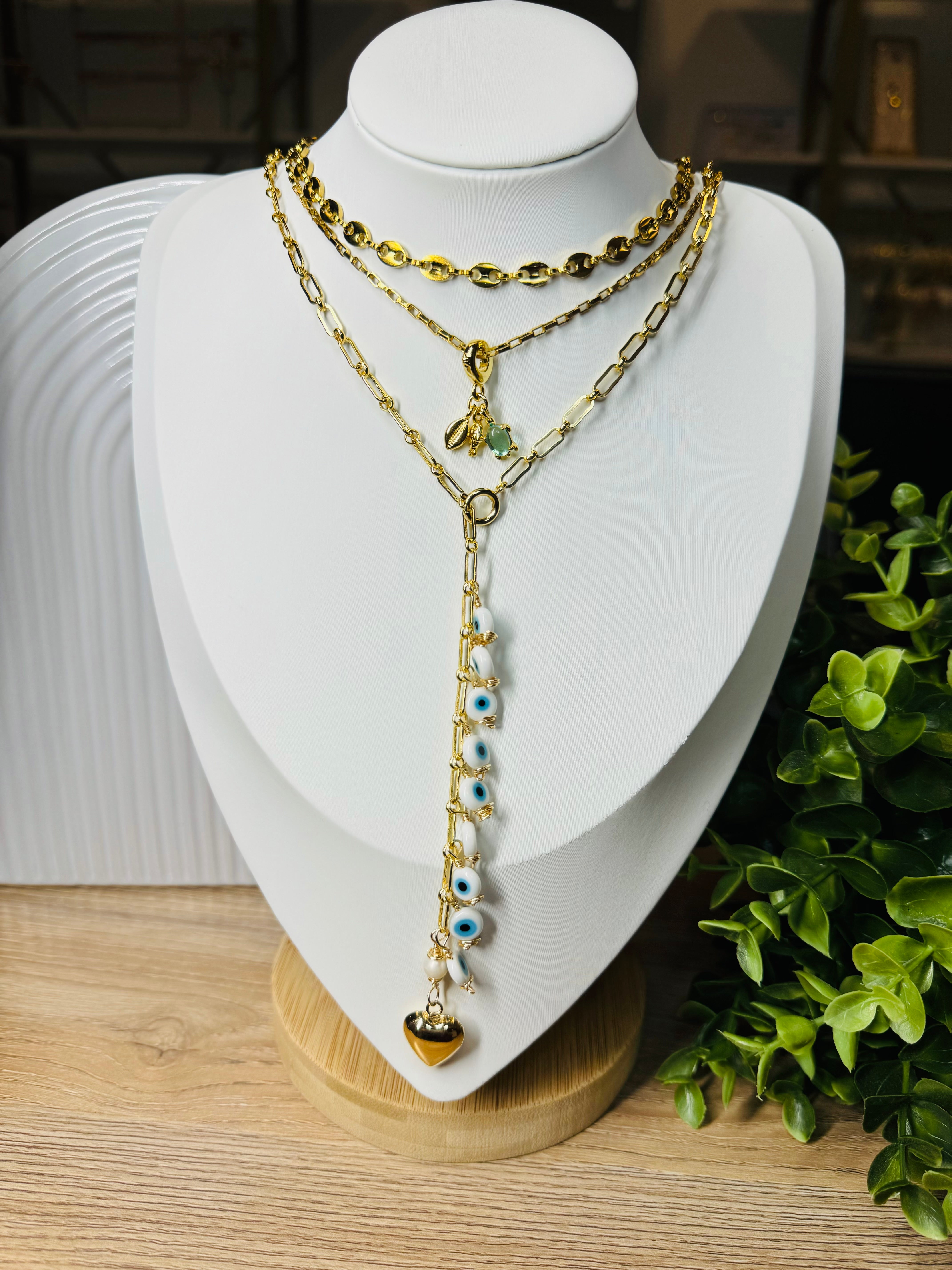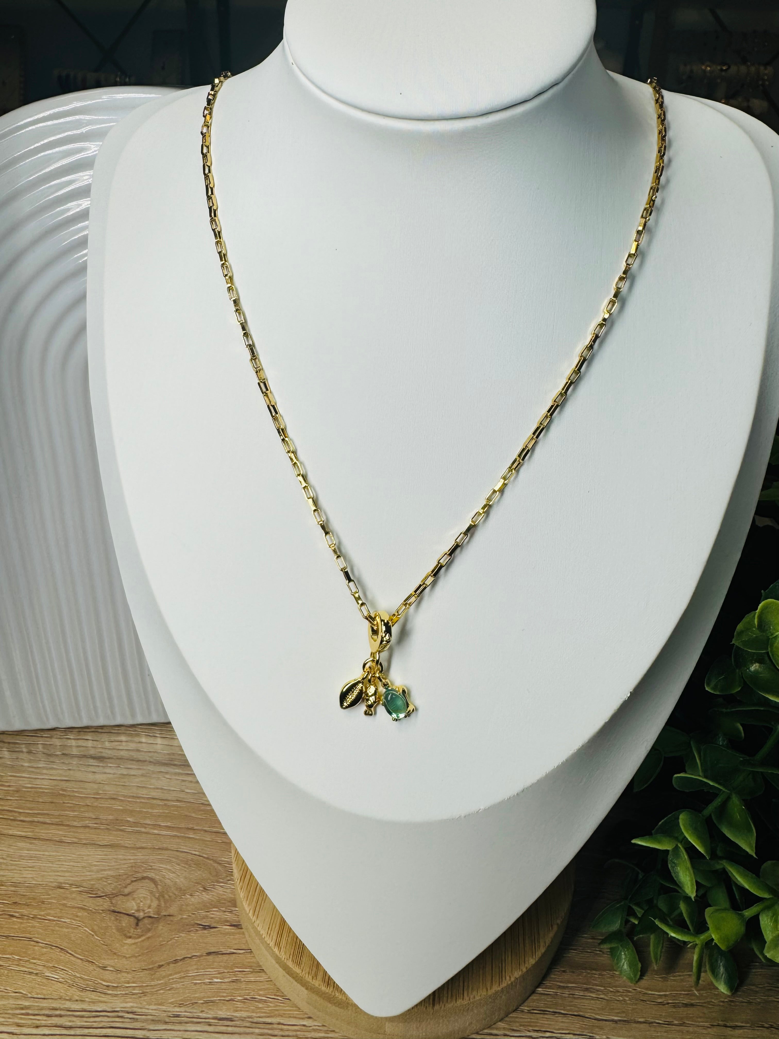 Collar dorado con dije de pez tortuga y cascara en acero inoxidable
