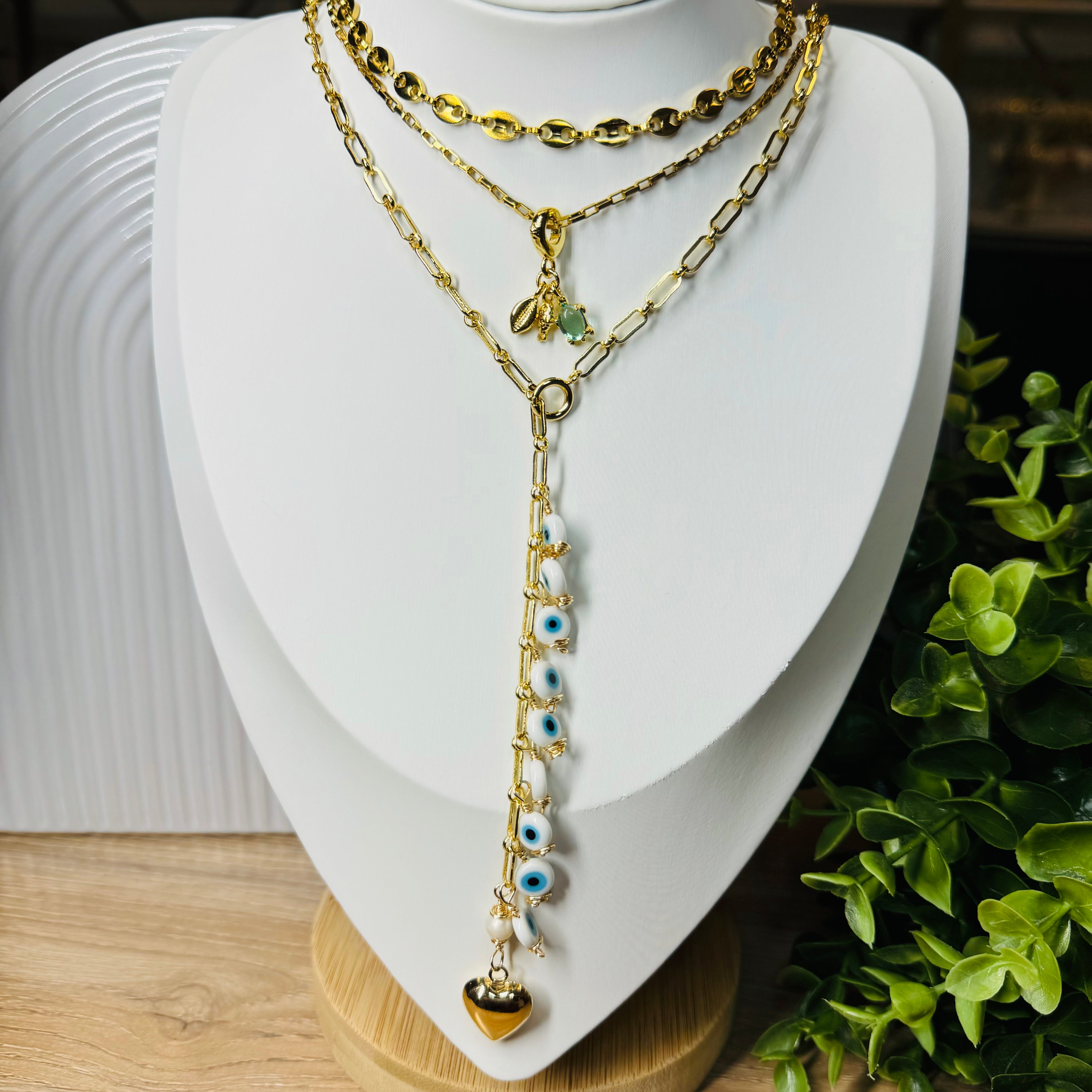 Sumérgete en un mundo de elegancia atemporal con la colección de collares de Karim Pérez. Cada pieza es una obra maestra artesanal que fusiona la belleza natural de las perlas y piedras semipreciosas con la sofisticación del cuero, oro y plata. Desde delicados collares con perlas iridiscentes hasta audaces diseños con cuero entrelazado y piedras preciosas, nuestra colección ofrece una gama versátil para complementar cualquier estilo y ocasión. Descubre el encanto único de la artesanía hecha a mano y añade un toque de glamour a tu look con los exquisitos collares de Karim Pérez.